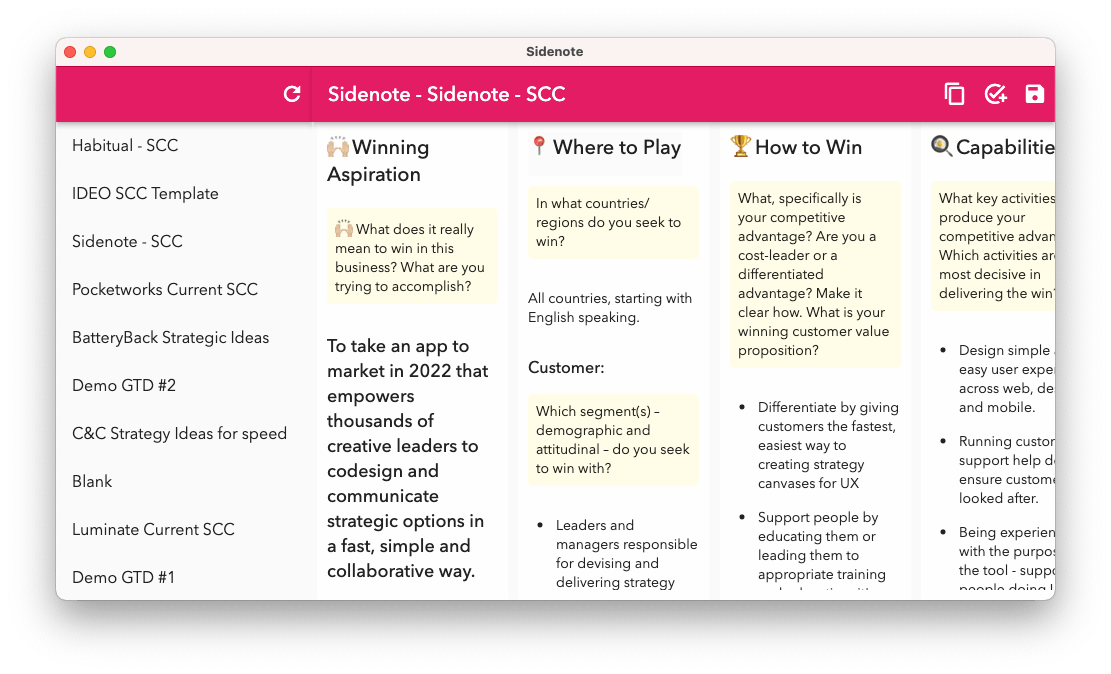 Sidenote is a notepad that helps strategic thinkers explore ideas and create options, fast.